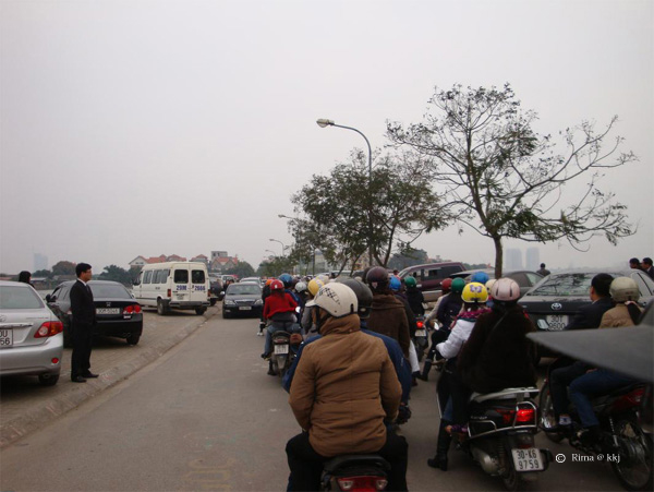 初詣に向かいます。写真の通り、四輪車も随分増えたとはいえ、相変わらずハノイの足は何処に行くのもバイクが主流です。