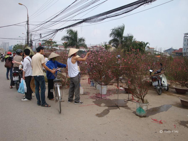 テト前はどこもそこも慌ただしく、市場価格も上がります。街のあちこちに無許可私設花市植木市が並び、見た目は綺麗だけれど、そのために各所渋滞悪化。