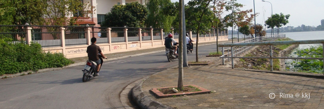 日中静かに家で過ごせない若者は、バイクで疾走。湖の周りをグルグル回って風を満喫します。ベトナム名物『バイク散歩』暴走族ならぬハノイ族。