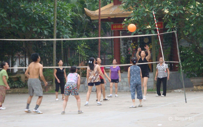 歩道や空き地は路上バトミントン・路上バレーボールの試合会場に早変わり。太極拳・マラソンを始め、思い思いに体を動かす人々でごったがえします。公園が多いハノイだからこその風景です。