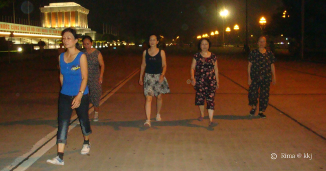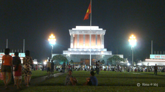 ハノイの観光名所、ホーチミン廟の前の公園の夜の様子です。