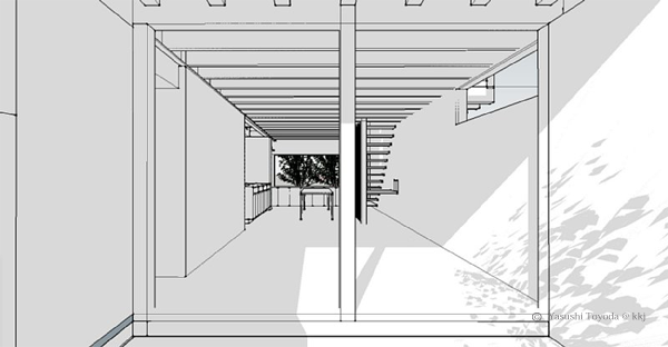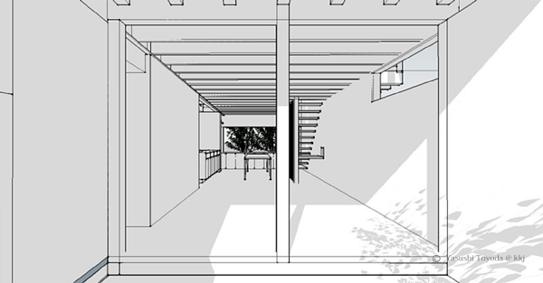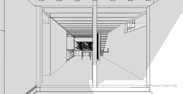 冬至は、建物奥のダイニングテーブルぐらいまで日射取得があることをシミュレーションで確認しています。