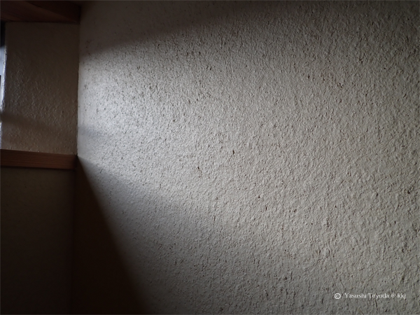秋から冬にかけては、日射取得が多くなります。壁は、土壁なので、直射が当たり蓄熱します。