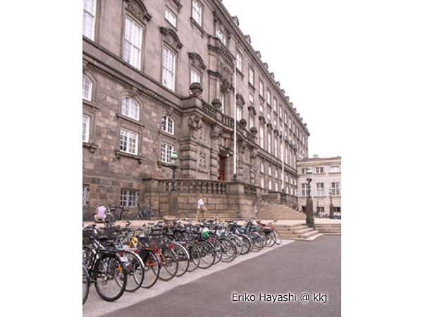 コペンハーゲンの街の中にある国会議事堂。自転車置き場はもちろん入り口のすぐ脇にあり、国会議員さん達も自転車通勤。