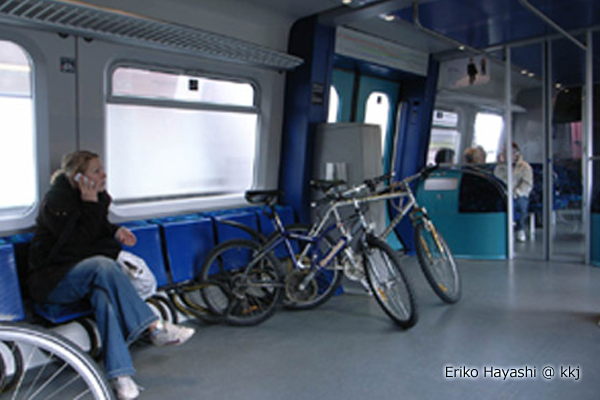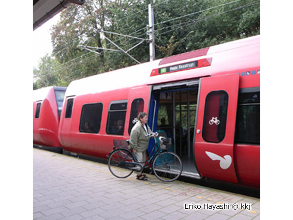 デンマークの電車、地下鉄の車両へは,ラッシュアワーを除いて、自転車も乗せることができるので、少し遠出のサイクリングや通勤もできるのです。夏休みに見かけた風景で、国境を越えて自転車ツーリングなんて、日本ではすこし考えられないことですね。