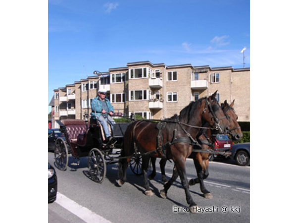 私のもっぱらの移動手段は自転車。どこに行くのも自転車で30分も走ると着いてしまいます。仕事場へも、毎日、自転車で10分。友達の家へお食事に行っても、終電を気にせず、自転車で。デンマークは平らな国なので、坂道もないので快適です。