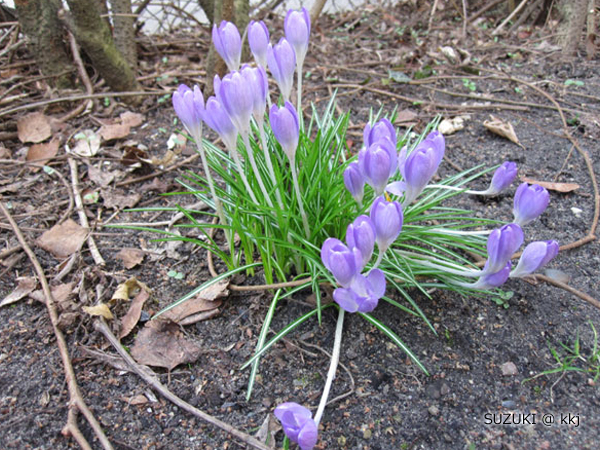 大晦日からずっと雪に覆われていた地面もやっと姿を現し、元気な植物にはすでに花が咲いていました。枯葉と隣合っているのが春の始まりらしいですね。
