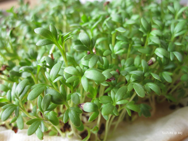 特に栽培が簡単なGartenkresse(クレス)はドイツ家庭の常備野菜。ハーブというより小さな青野菜。サラダにふりかけたりお皿のデコレーションにしたり、なかなか重宝するのです。