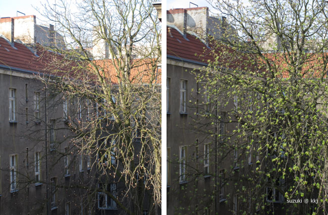 裏庭の木を観察していたら20日間でこうして見事な緑をつけました。