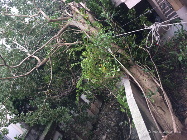 我が家では、アパート前にあった3階建の高さまである木が倒れ込んでいました。また近所のバルコニーに設置してあった木製ルーバーが落下していました。幸いけが人もなかったのですが、木がもたらしてくれた大きな影や木漏れ日、爽やかな風を失ってしまった事はショックでした。