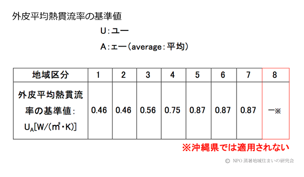 断熱性能を示すといわれているU値、これは沖縄県の8地域だけは基準の規定はありません。