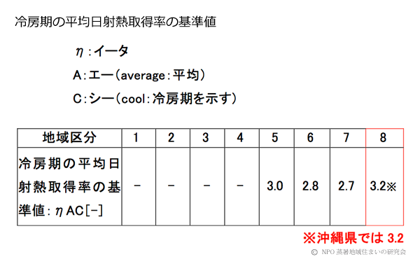 冷房期の平均日射熱取得率の基準値/建築物省エネ法における基準値をNPO蒸暑地域住まいの研究会で作成