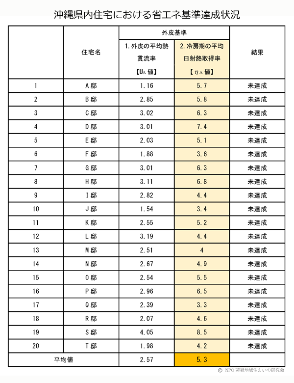 実態調査を行えば行うほど、沖縄の一般的な住宅は外皮の基準である平均日射熱取得率の基準値達成が困難である事がわかりました。