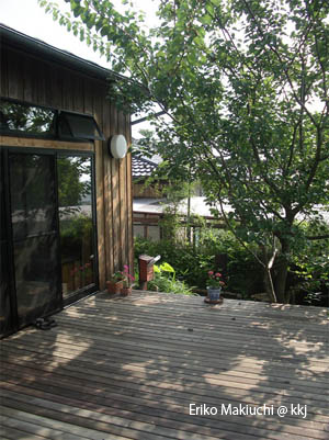 二時くらいに家の影が南のデッキにさしてきます。