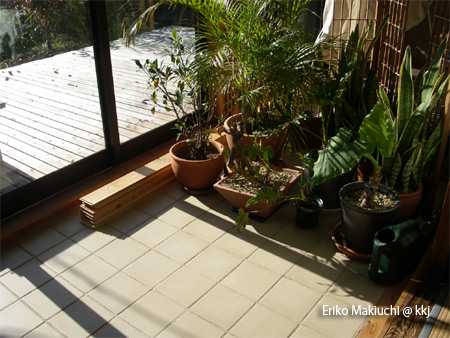 だいたい3時くらいから日差しは西の方に傾き、土タイルにももう日はあたりません。